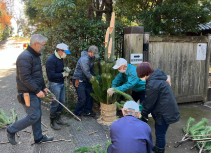 毎年お正月に木戸門に飾る「門松」は、竹林の竹を使い製作しています。
