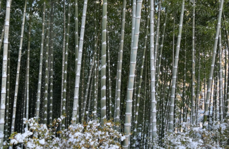 民家園自慢の竹林整備をしています。古い竹を間引き、その竹を粉砕機にかけチップを作り竹林に撒き戻す。一年を通じて大変な作業ですが、適度な日差しが差し込んだ清々しい竹林を訪れた方に喜んでもらえる様に作業をしています。